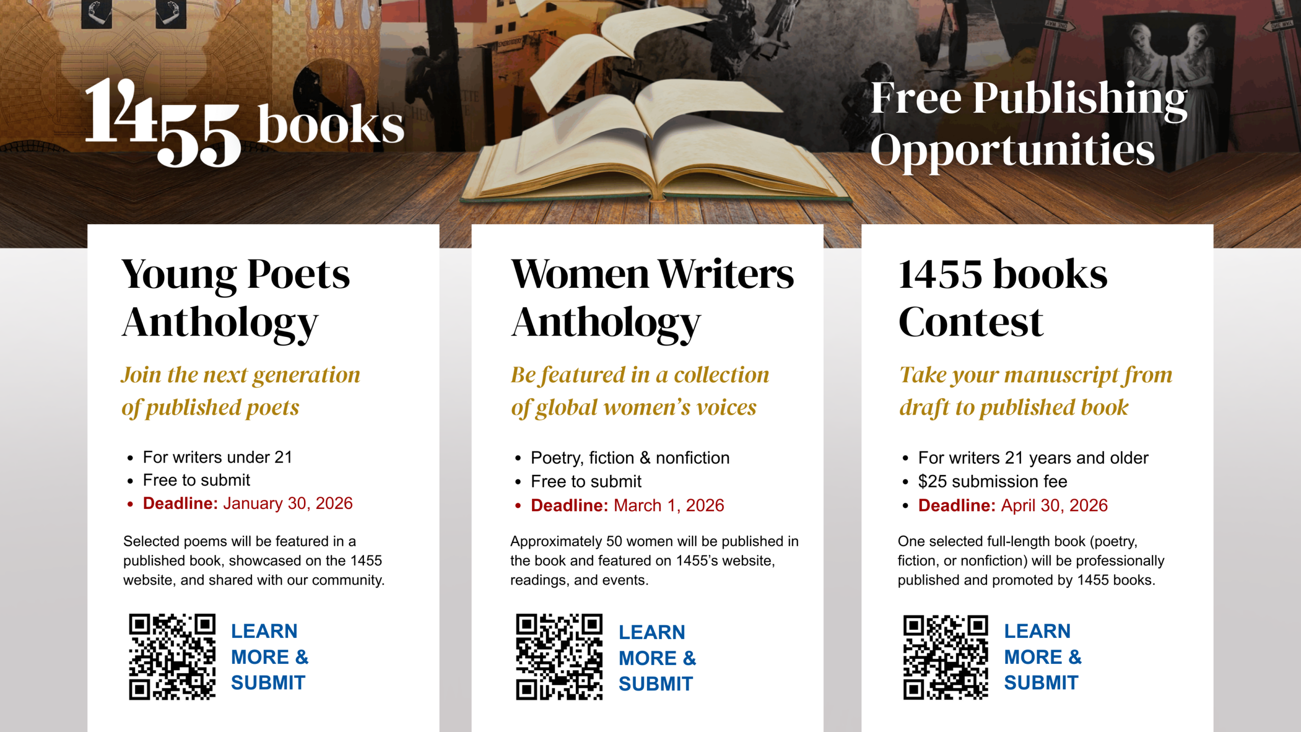 Three Opportunities. Three Books. Countless New Voices.